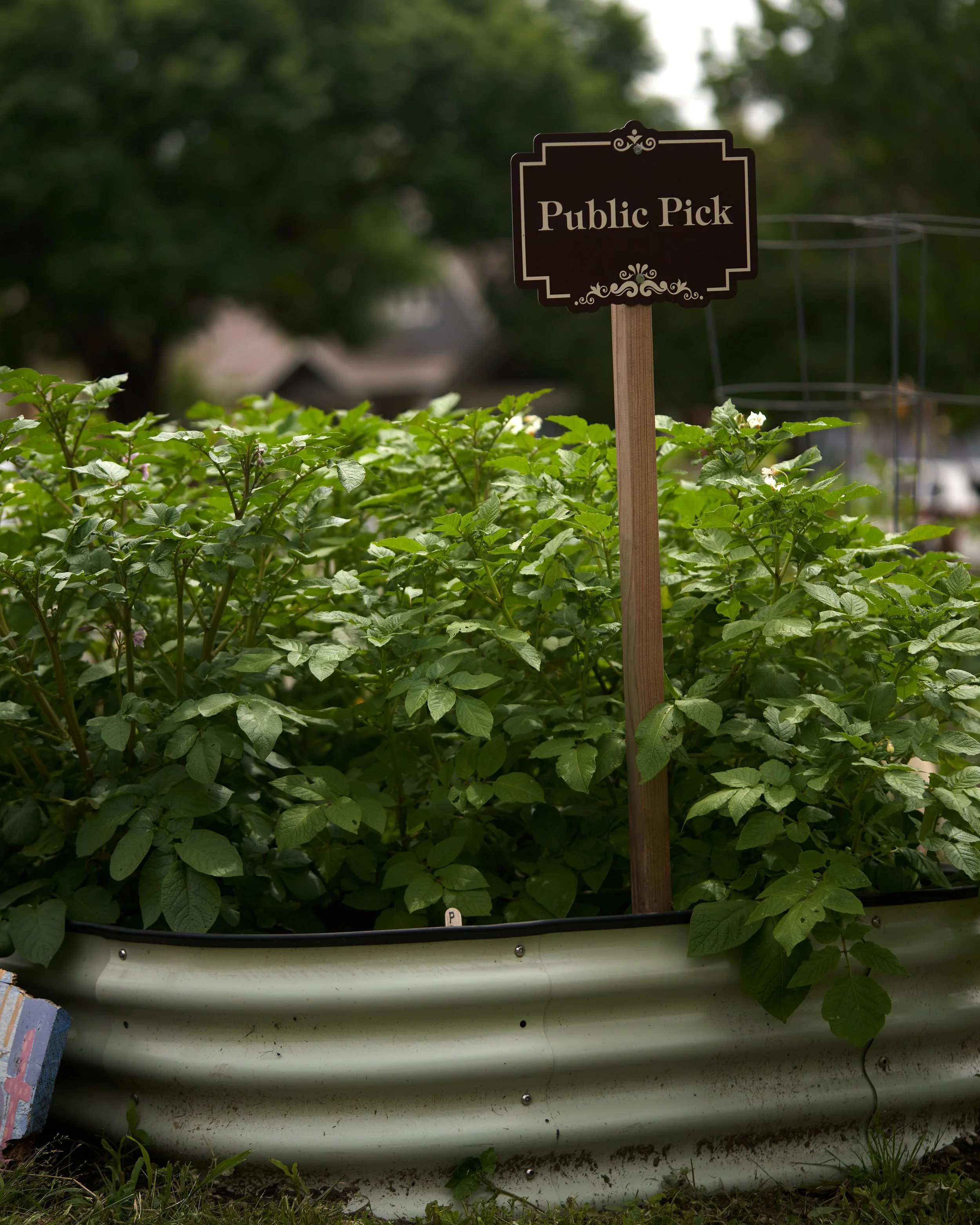 We all get by with a little help from our friends. Signage in the garden designates our Public Picks for the community. We encourage visitors to help us with watering and weeding these Public Picks so that they thrive. Anyone is welcome to take cuttings or produce that you would like to use.